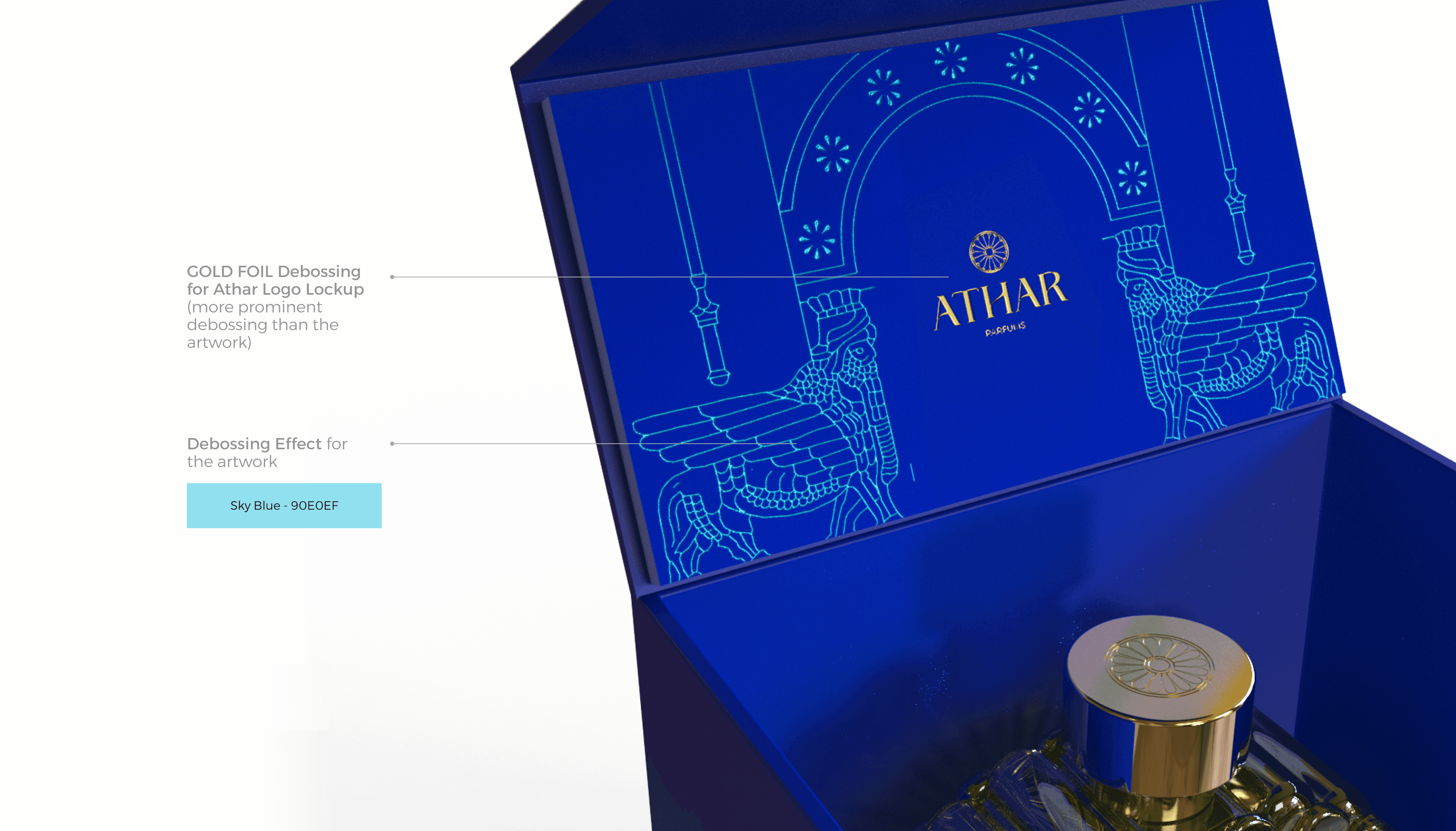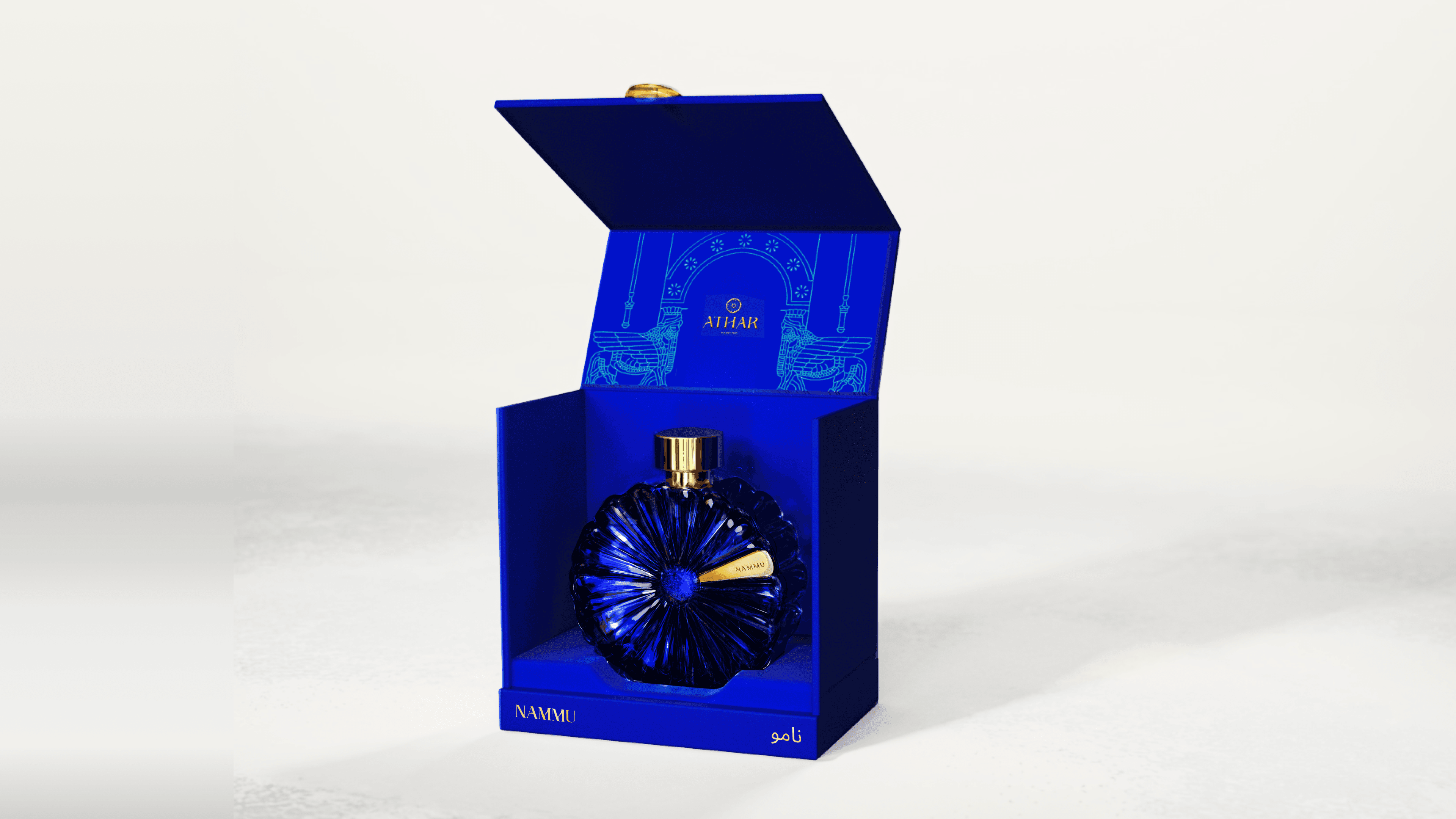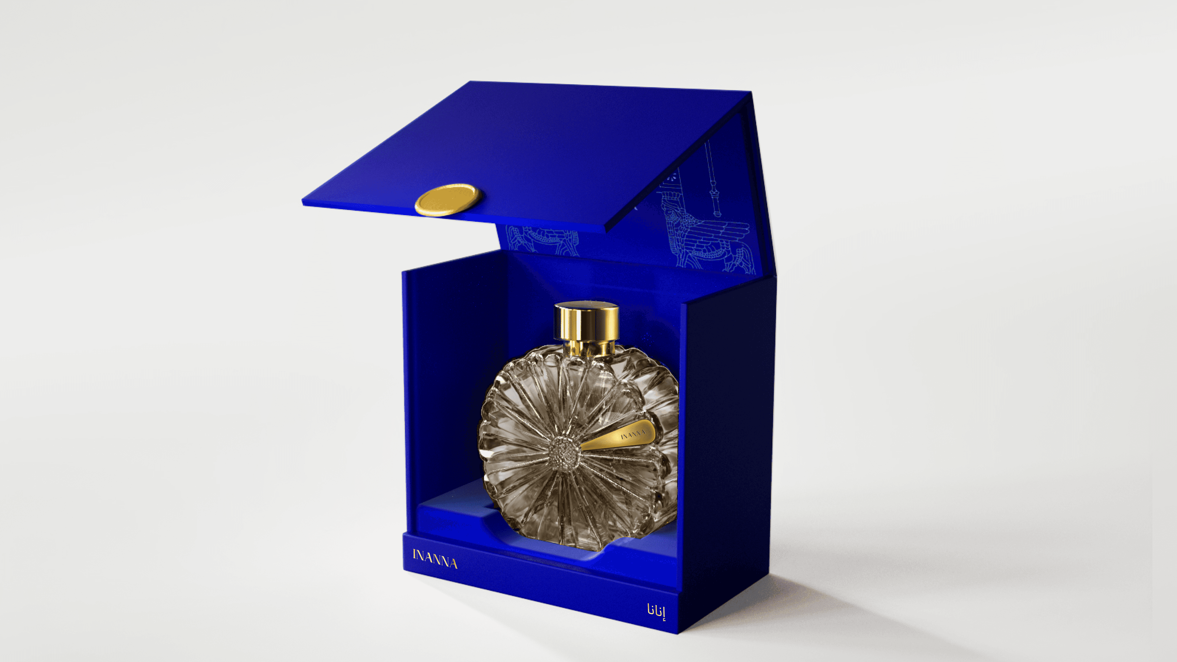 Secondary packaging design for a new Middle Eastern fragrance brand inspired by assyrian culture.