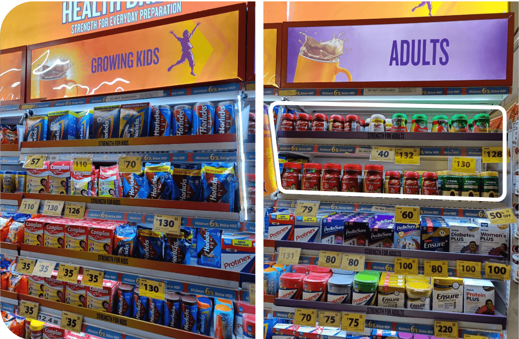 Chyawanprash is kept under the Adults health supplement section - a kid does not usually force parents to buy chyawanprash like they do for BournVita and other flavored drinks