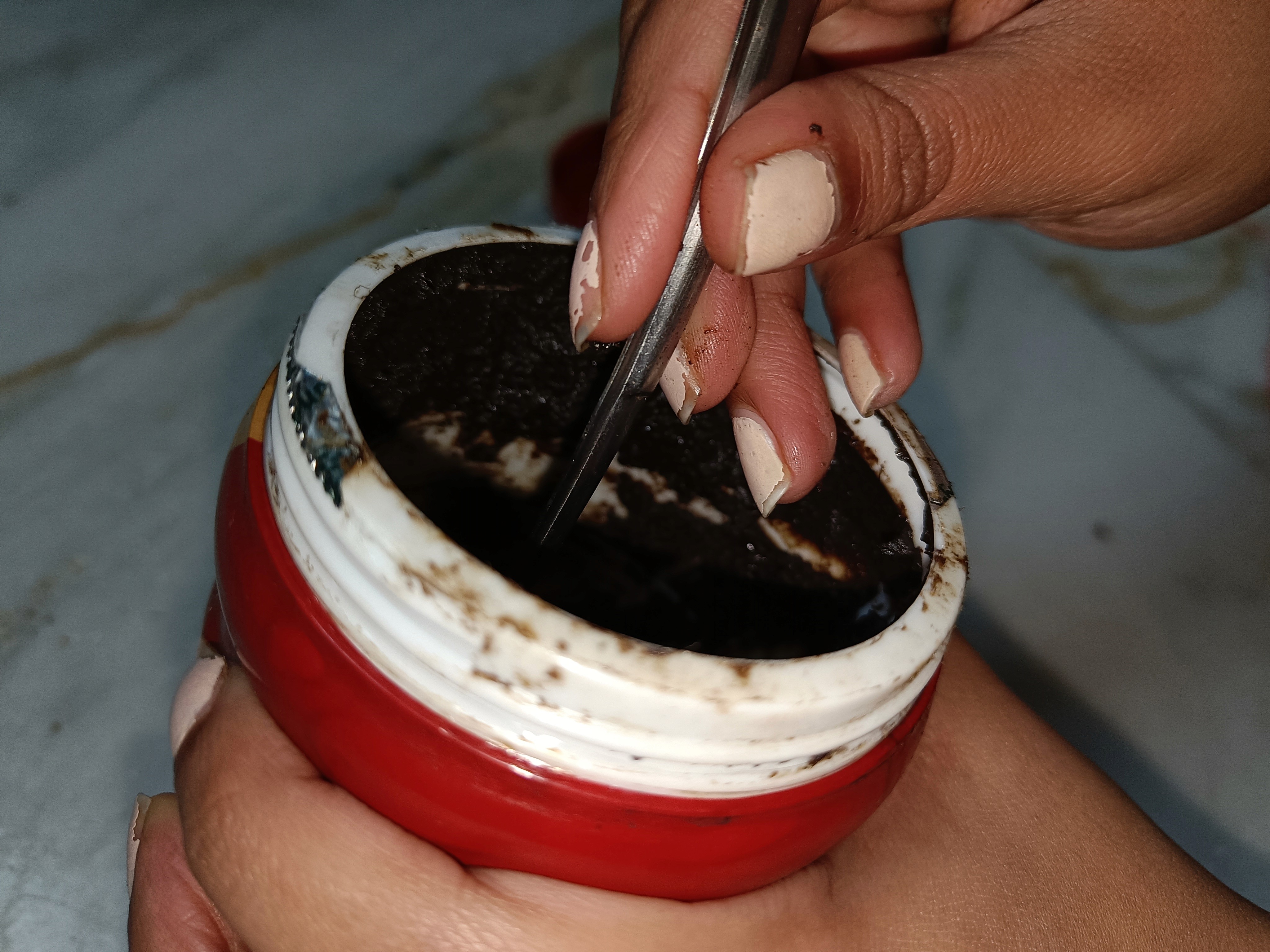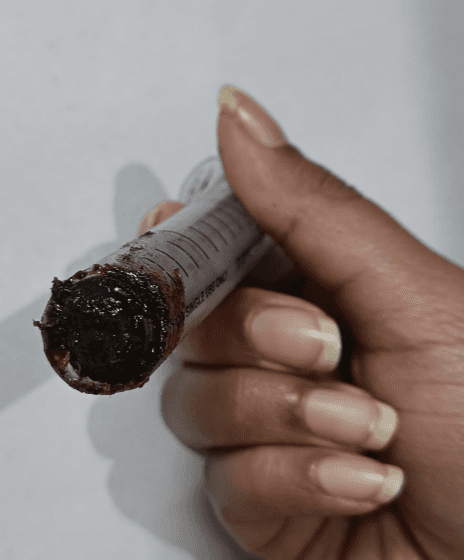 I experimented by cutting the front part of syringe in such a way such that we could scoop in like a normal spoon instead of filling in chyawanprash through plunger. But then it didn't dispense properly because it needs a closed space to create a vacuum to dispense it all.