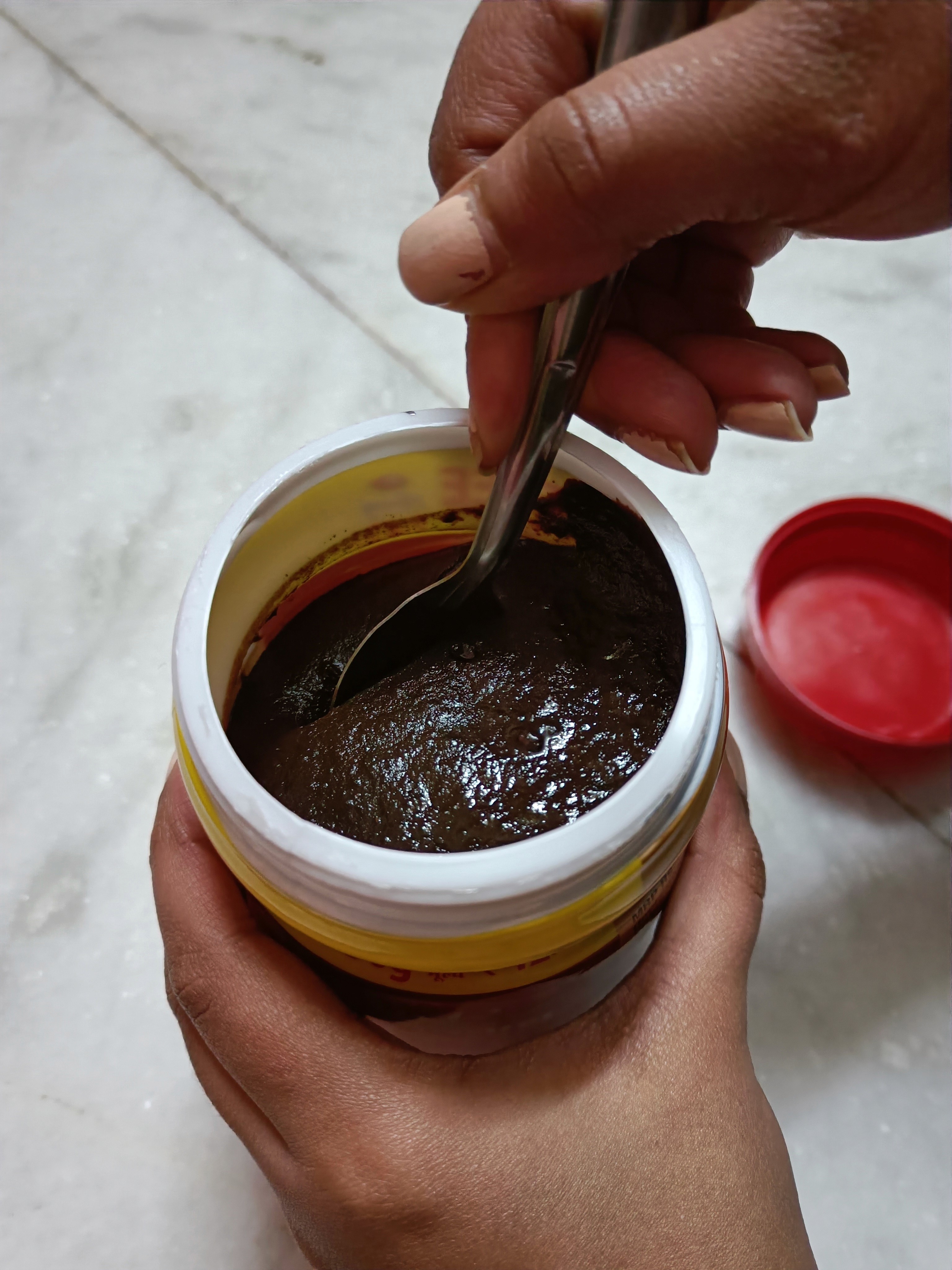 User can dispense the chyawanprash directly into their mouth, bowl, glass of milk or kid’s mouth according to their requirement and preference, eliminating the need of another spoon.