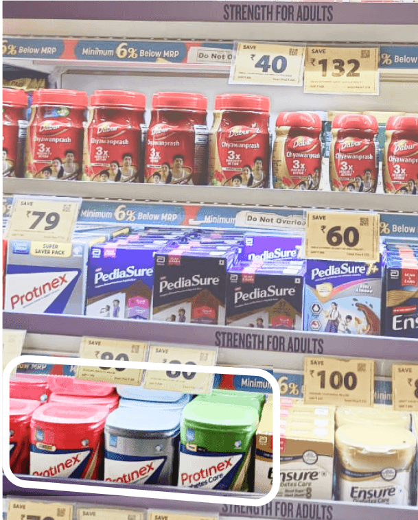 (Protinex Height - 14cm) <15cm containers have less visibility on shelf in terms of branding