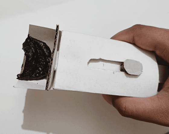 The Slider allows the user to slide the Silicone Scraper to dispense the collected chyawanprash.